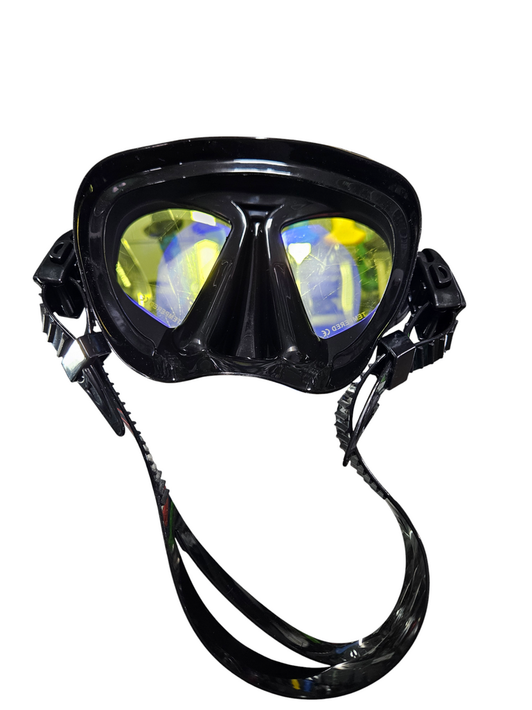 Super soft silicone wrap mask. Plastic lenses Great comfort and wide viewing angle. Quick adjustment buckles. Lightweight, foldable, easy to store. Reduced internal volume
