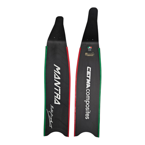 Pinne in fibra di carbonio 1) Pala 100% fibra di carbonio IM7. 2) Il Materiale è PRE-PREG 100 % Carbonio ottenuto con sistemi di impregnazione hot melt con resina tetra-funzionale. 3) 3D-Tech: Tecnologia proprietaria, know how esclusivo di CETMA COMPOSITES, ad alta pressione, alta temperatura e sottovuoto, che implica un componente con 0% di vuoti, privo di difetti, e con un rapporto fibra/resina costante su tutta la pala. 4) FEM Design: Il design di MANTRA è ottimizzato attraverso una attenta progettazione agli elementi finiti (FEM). I software impiegati consentono di assicurare una distribuzione ottimale delle rigidezze al fine di riprodurre una deformata della pala che garantisce il massimo rendimento idrodinamico. 5) Signature model: Sviluppata in collaborazione con il campione del mondo CWT bi fins Michele Giurgola; 6) DRS (Dynamic Resonance System) nuovo sistema innovativo esclusivo di CETMA COMPOSITES. Questo sistema implica che le pala MANTRA è stata progettata per andare in risonanza in un determinato range di frequenze di pinneggiata. Il fenomeno della risonanza, infatti, è un noto fenomeno fisico che caratterizza qualsiasi struttura. Semplificando possiamo dire infatti che quando una struttura è forzata con una frequenza prossima alla sua frequenza naturale l’ampiezza delle vibrazioni aumenta in un modo molto efficiente (basso smorzamento). Attraverso la progettazione ingegneristica si è riusciti a distribuire la rigidezza e la massa della pala in maniera da “sintonizzare” la pala in un certo range di frequenze naturali prossime a quelle della frequenza di pinneggiata, permettendo quindi il fenomeno della risonanza. Il feedback finale dell’utilizzatore è quindi uno sforzo molto basso corrispondente ad una propulsione incredibile. Questo studio è fatto utilizzando un vibrometro laser (LDV) per eseguire una analisi modale, che è servita per stabilire la distribuzione di massa e rigidezza della pala. 7) Dimensioni: Larghezza 195 mm; Lunghezza dalla piega 742 mm; angolo di inclinazione 33 gradi. 8) Rigidezze: super soft (XS), soft (S), medium (M), hard (H). 9) Colori: Bianco, Oro, Magenta. 10) Attacco scarpetta: CETMA COMPOSITES, Mares e Pathos. 11) Water rail: Water rails ad altezza variabile ad alto rendimento. 12) Garanzia: 2 anni sulle parti in carbonio; 5 anni se allestita con scarpetta Cetma Composites ( Scopri come ). 13) Risultati conseguiti: CAMPIONE ITALIANO 2016 CWT bi-pinne con -92 meters in 2 minutes and 55 seconds.
