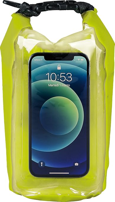 La sacca da 2 litri è dotata di una tasca dedicata per il cellulare, progettata per offrire protezione dagli agenti esterni durante attività all'aperto. Realizzata con materiali impermeabili, è in grado di proteggere il suo contenuto dall'acqua, mentre la sua resistenza alla sabbia e alla polvere garantisce una protezione completa anche in ambienti più estremi. La presenza di uno schermo protettivo trasparente, altamente sensibile al tatto, consente di utilizzare il cellulare senza doverlo estrarre dalla sacca, migliorando la praticità e la comodità durante l'uso.