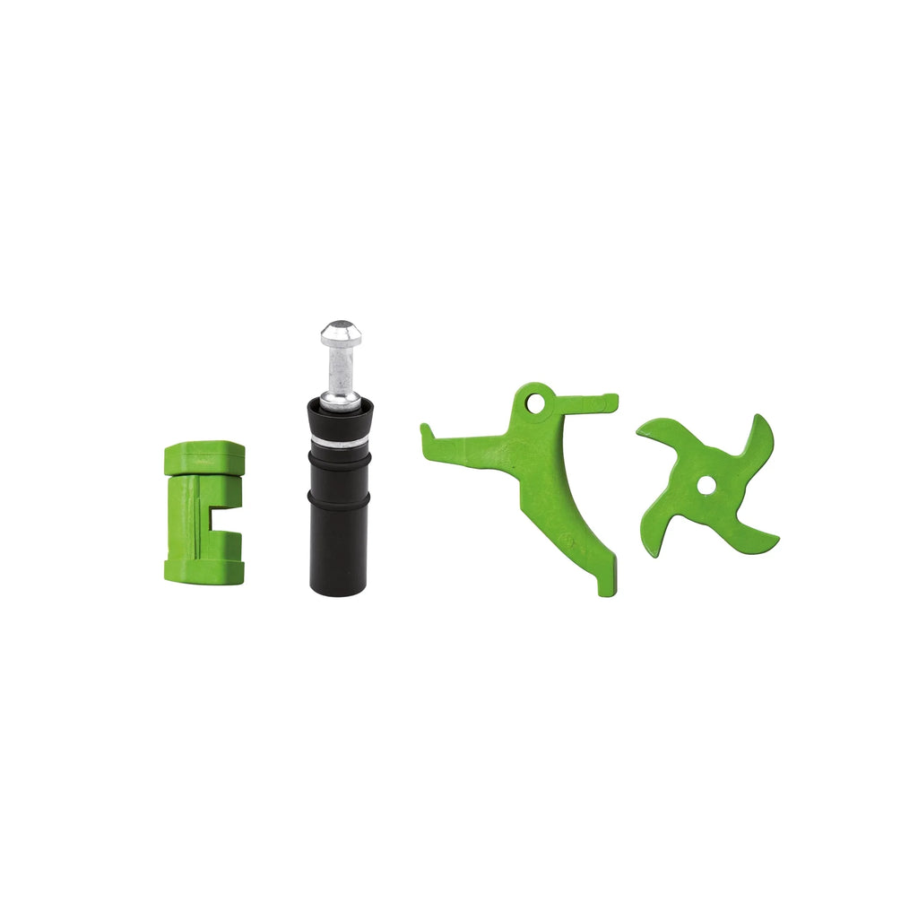 Il kit comprende un pistone alleggerito di ultima generazione che migliora le prestazioni del fucile, oltre al grilletto sensitive e allo sgancia sagola con sicura in colorazione.
